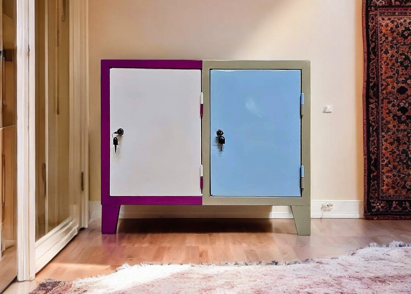 El mini locker de puertas anchas ofrece una solución inteligente para guardar sus objetos de valor sin ocupar demasiado espacio. Su diseño compacto garantiza que quepa perfectamente en habitaciones pequeñas sin dejar de ofrecer puertas anchas para un acceso cómodo.